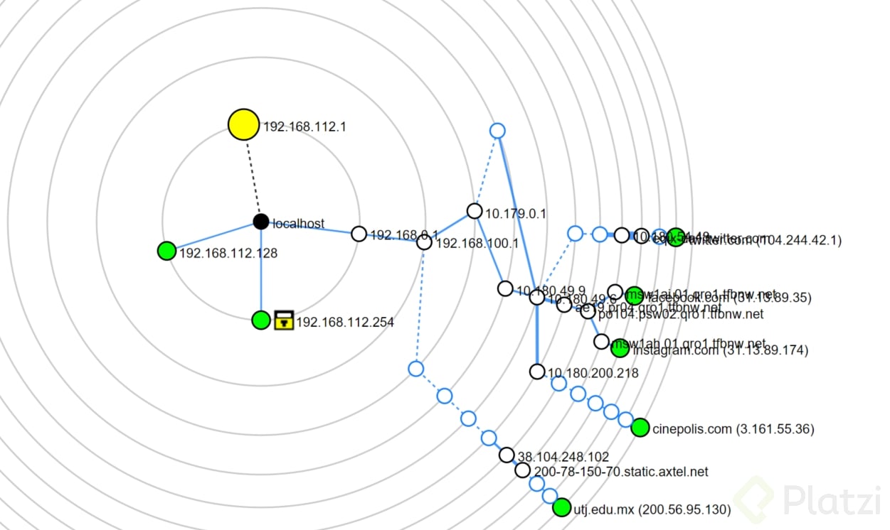 El análisis de estos datos es de información, ya que no se obtiene el permiso para escanear o hacer auditoria de pentesting a ninguno de los dispositivos por el cual pasa un paquete antes de llegar a su destino final.