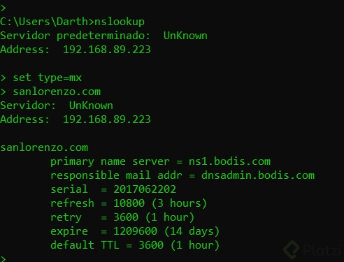 - Colocar dominio, por ejemplo: >platzi.com