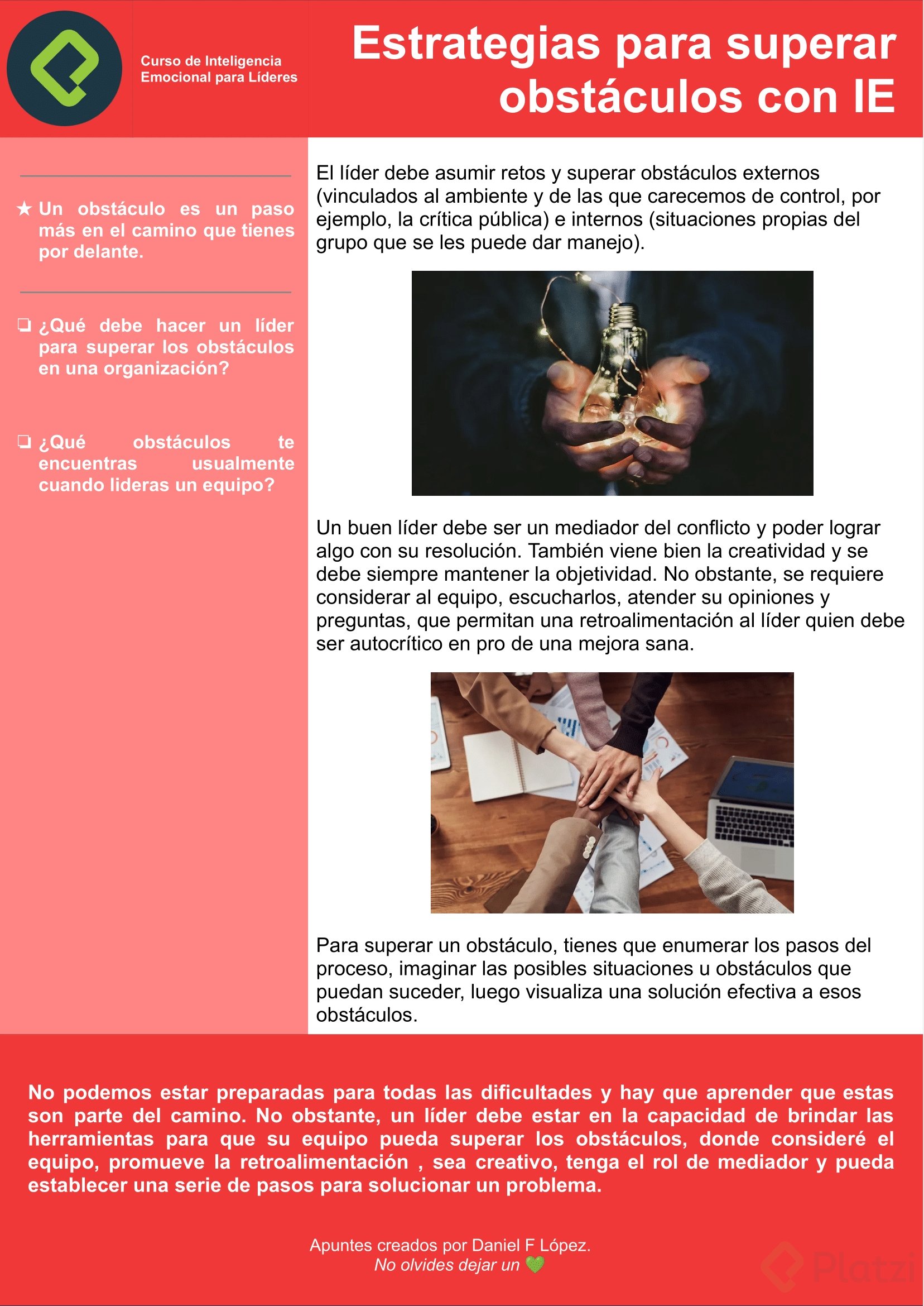 Un buen líder es capaz de manejar los obstáculos eficientemente. Exploraremos los obstáculos principales a los que debe enfrentarse todo líder junto a su equipo, así como la estrategia para superarlos con inteligencia emocional.