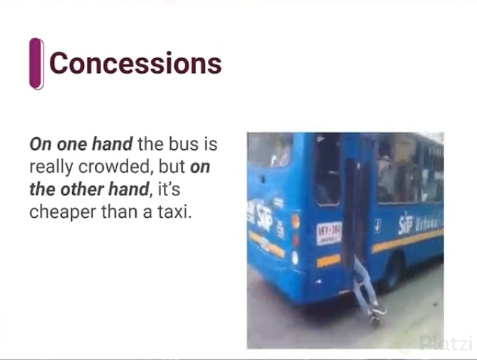 - On one hand, the bus is really crowded. But on the other hand, it’s cheaper than a taxi.