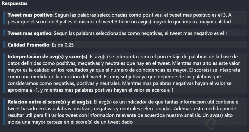 El análisis de sentimientos es una herramienta poderosa para comprender el tono y las emociones detrás de los textos y, en este caso, de los tweets. Aunque no realizaremos un procesamiento avanzado del lenguaje natural, aprenderás a detectar signos de positividad, neutralidad o negatividad mediante un enfoque más sencillo, observando características específicas de los enunciados. Vamos a construir una máquina de análisis y analizar la calidad de nuestro trabajo.