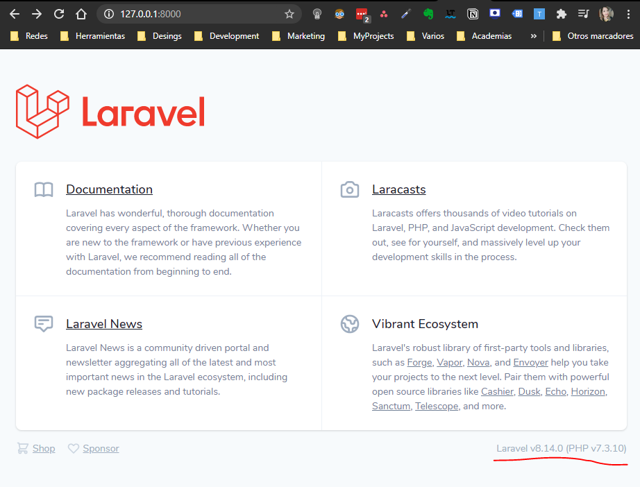 laravel new ciclopara iniciar un nuevo proyecto llamado "ciclo". - Visualiza tu proyecto en el navegador: Una vez instalado, ingresa a