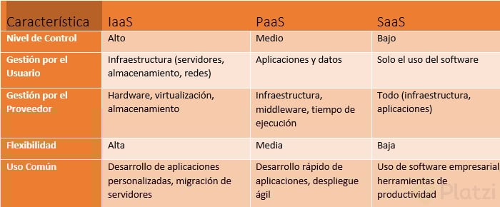 - IaaS: Ideal para quienes necesitan control sobre las configuraciones de infraestructura. Es más administrativamente intensivo.