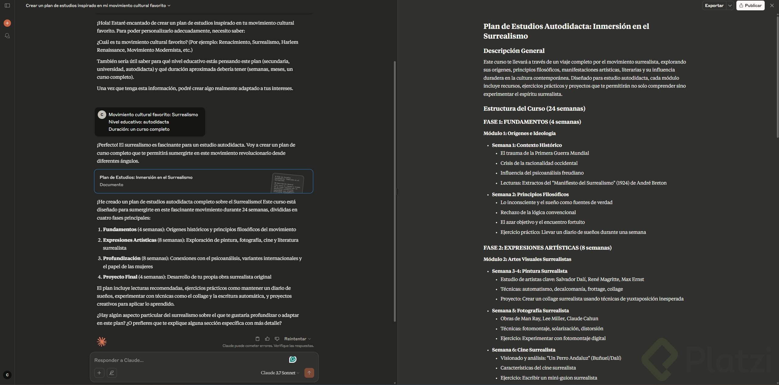 Cloude facilita compartir y ejecutar el plan diseñado, permitiendo exportar detalles directamente en formatos como Excel. Algunos aspectos importantes de esto son: