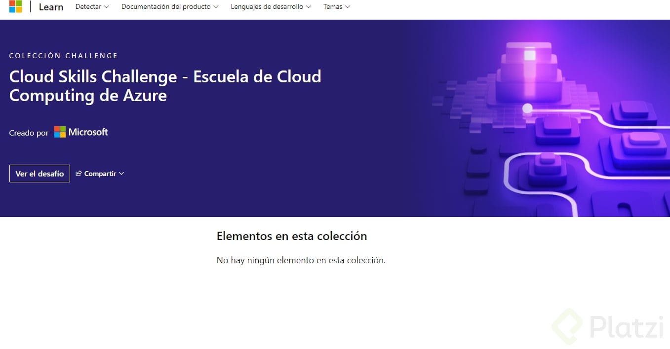 - Por último, regístrate al desafío de la Escuela de Cloud Computing con Azure.