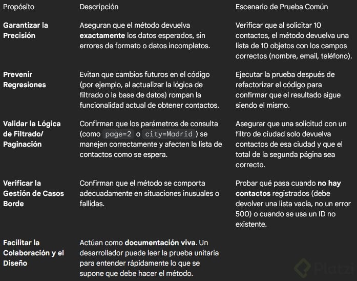 Es indispensable que realices pruebas unitarias para verificar el comportamiento de tu código. En esta implementación, será suficiente con crear un nuevo archivo llamado ApiContactosTest.cs y pegar el fragmento de código de prueba proporcionado.