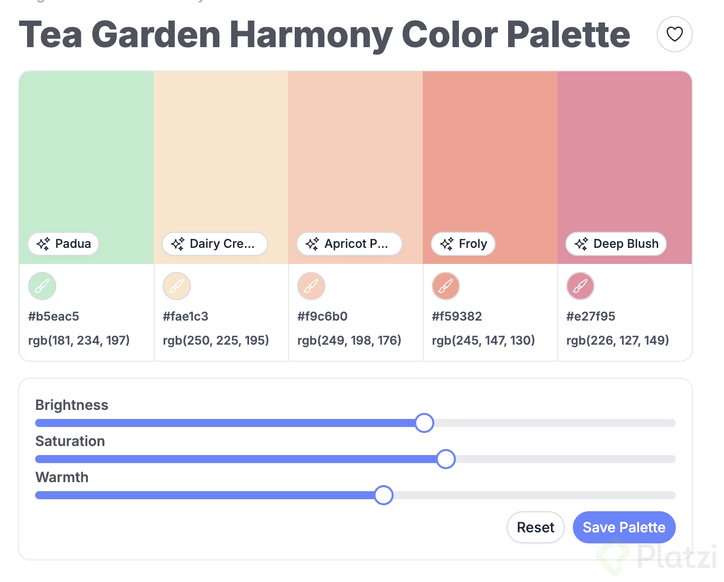 - Rapidez y eficiencia: Con solo unos clics, es posible generar y modificar múltiples paletas de colores.