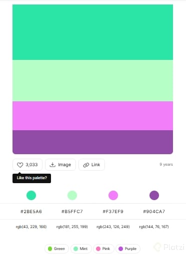 - Búsqueda por tonos y temas: Permite buscar paletas asociadas a tonos específicos como rosa o temáticas como nocturnas.
