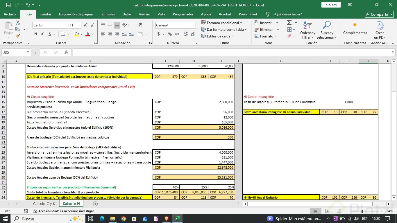 Estos cálculos establecen una estructura clara de cuánto representa mantener el inventario, afianzando el entendimiento del EOQ.