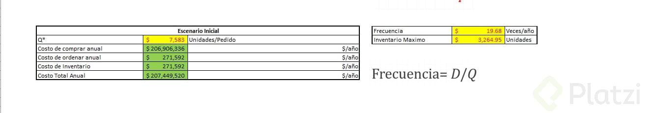 - La frecuencia se calcula dividiendo la demanda anual por la cantidad económica a producir.