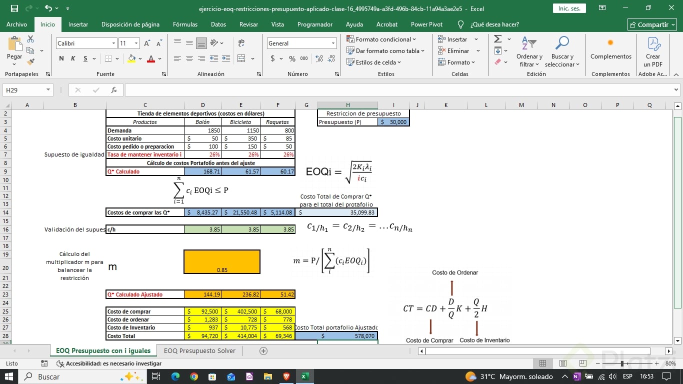 En el dinámico mundo empresarial, manejar el inventario de manera eficiente es crucial para la sostenibilidad de una empresa, especialmente cuando se enfrenta a limitaciones presupuestarias. Aquí te explicaremos cómo aplicar el modelo de cantidad económica de pedido (EOQ) en un escenario con restricciones de presupuesto, utilizando un ejemplo aplicable a una empresa deportiva.