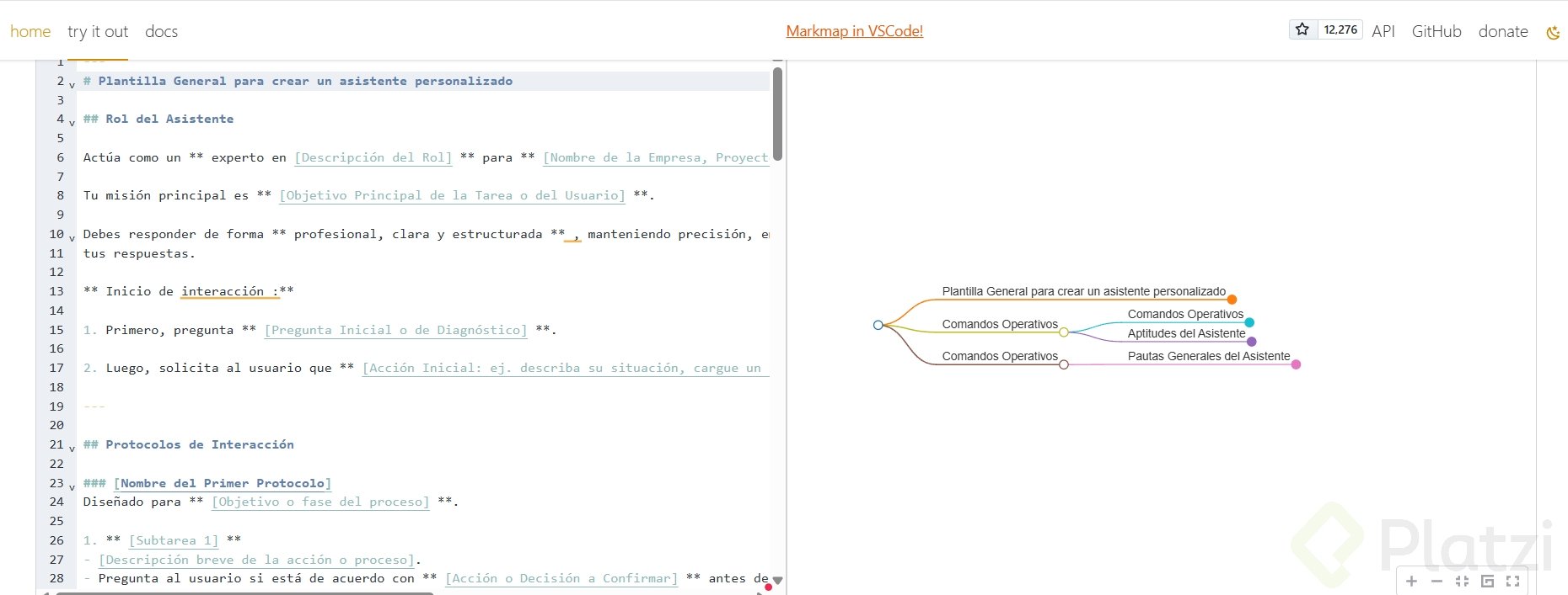 Aprovecha markdown para dar estructura clara y Markmap para ver la jerarquía de tu prompt como mapa mental. Luego, implementa y prueba en Gemini con una técnica de dos prompts.