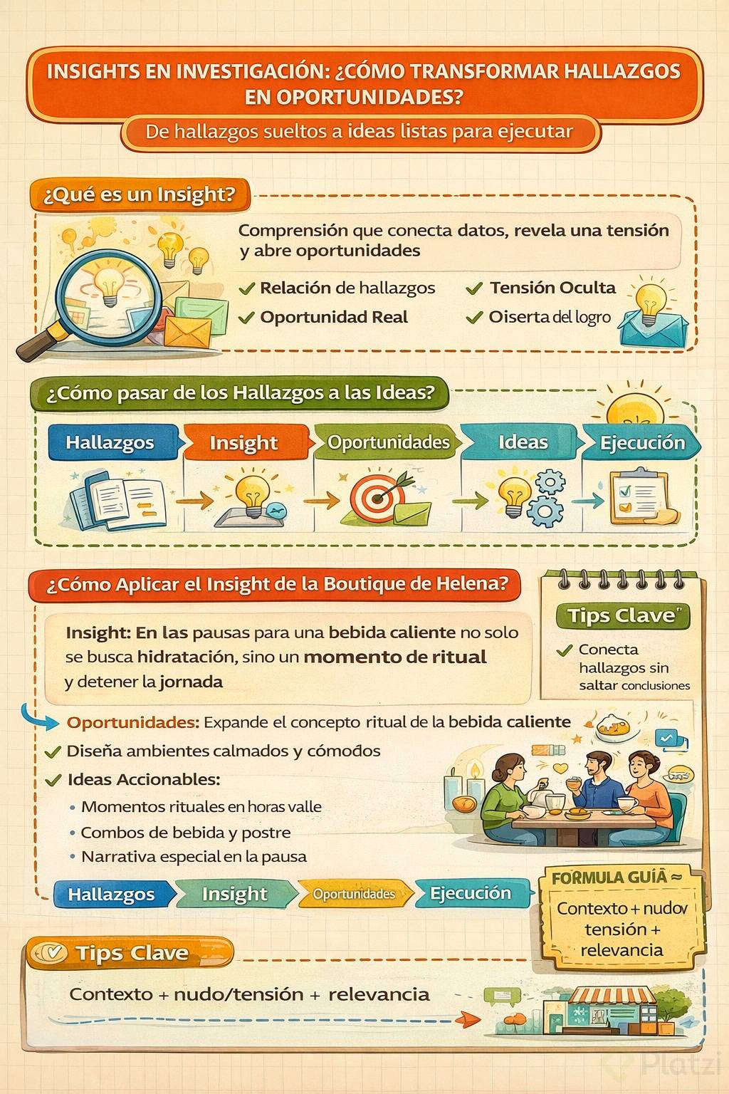 Comprende con claridad qué es un insight en investigación y cómo usarlo para tomar decisiones. Aquí verás cómo pasar de hallazgos sueltos a oportunidades e ideas listas para ejecutar, usando el caso de la boutique de Helena como hilo conductor.