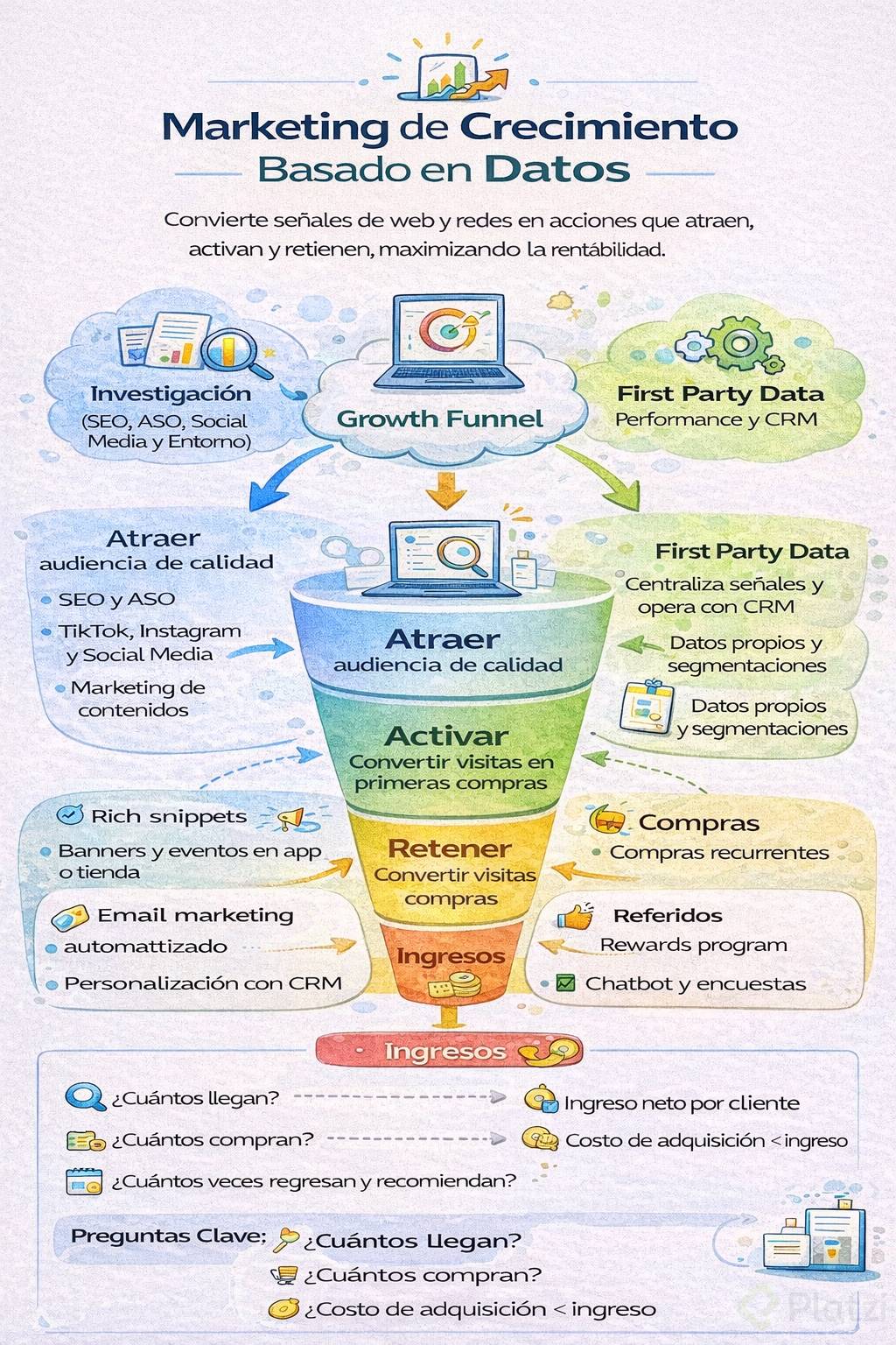 Los datos que dejan tus usuarios en web y redes son señales valiosas. Con un enfoque de growth marketing y un funnel de growth bien definido, puedes convertir esas señales en acciones que atraen, activan, convierten y retienen, mientras cuidas la rentabilidad. Aquí verás cómo integrar investigación, canales digitales y first party data para tomar decisiones certeras, sin perder de vista el negocio.