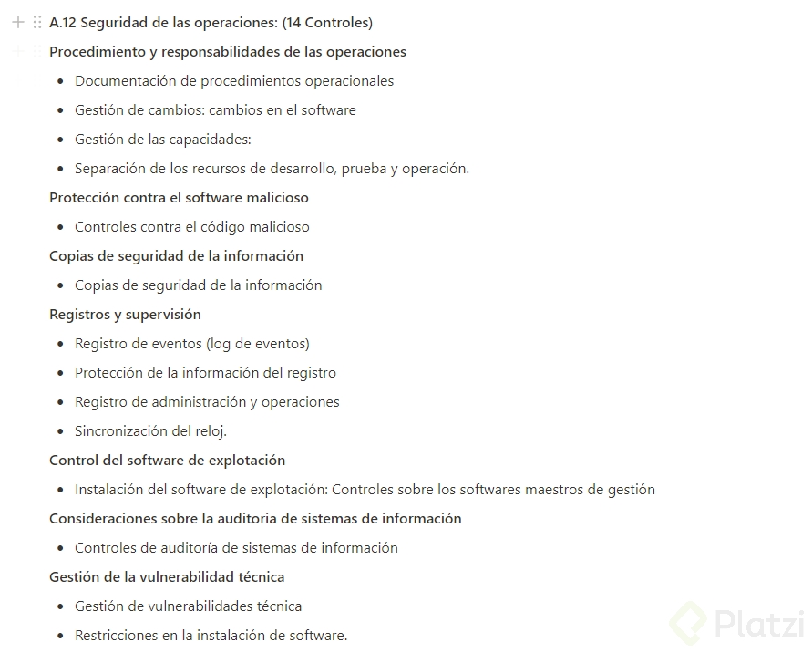 En resumen, estos pilares del anexo A de la ISO 27001 son esenciales para mejorar la seguridad operativa y proteger la información en entornos organizacionales complejos. Persiste en el camino del aprendizaje para dominar estos conceptos y aplicar más eficazmente las mejores prácticas en seguridad de las operaciones.