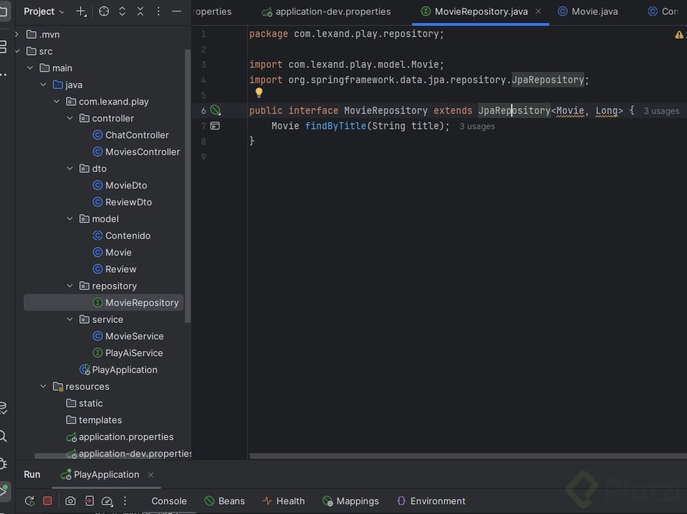 - Ahora inyecta MovieService en vez del CRUD directamente.