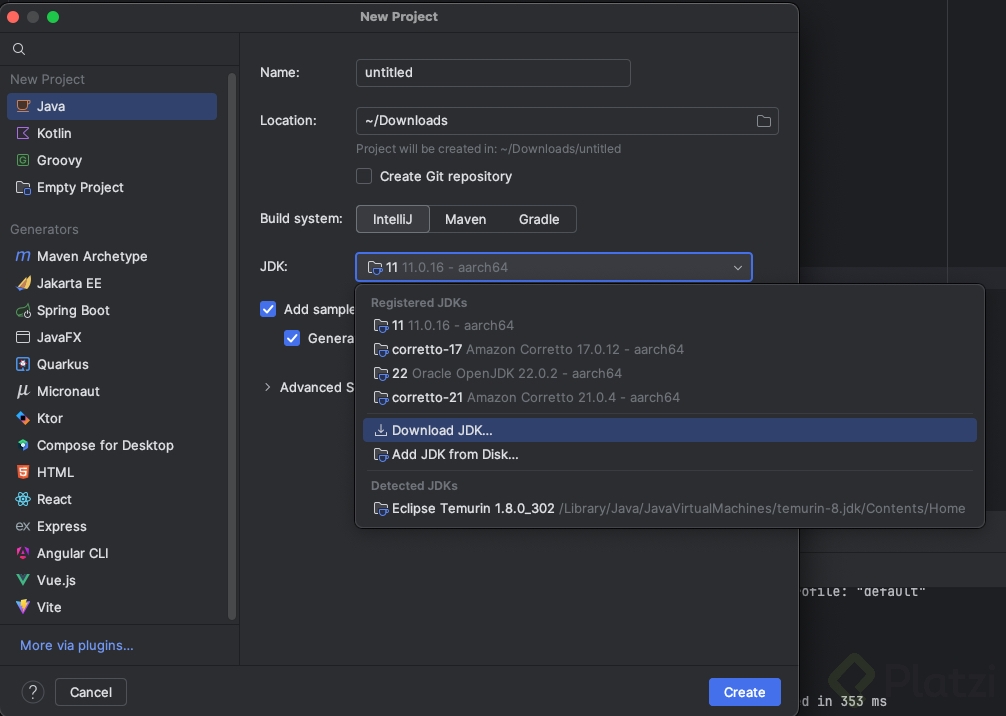 Open Model Settingsy verifica en la sección deProjectque elProject SDKesté configurado en la versión 11 de Java. - Exclusión de archivos innecesarios: Excluye archivos como