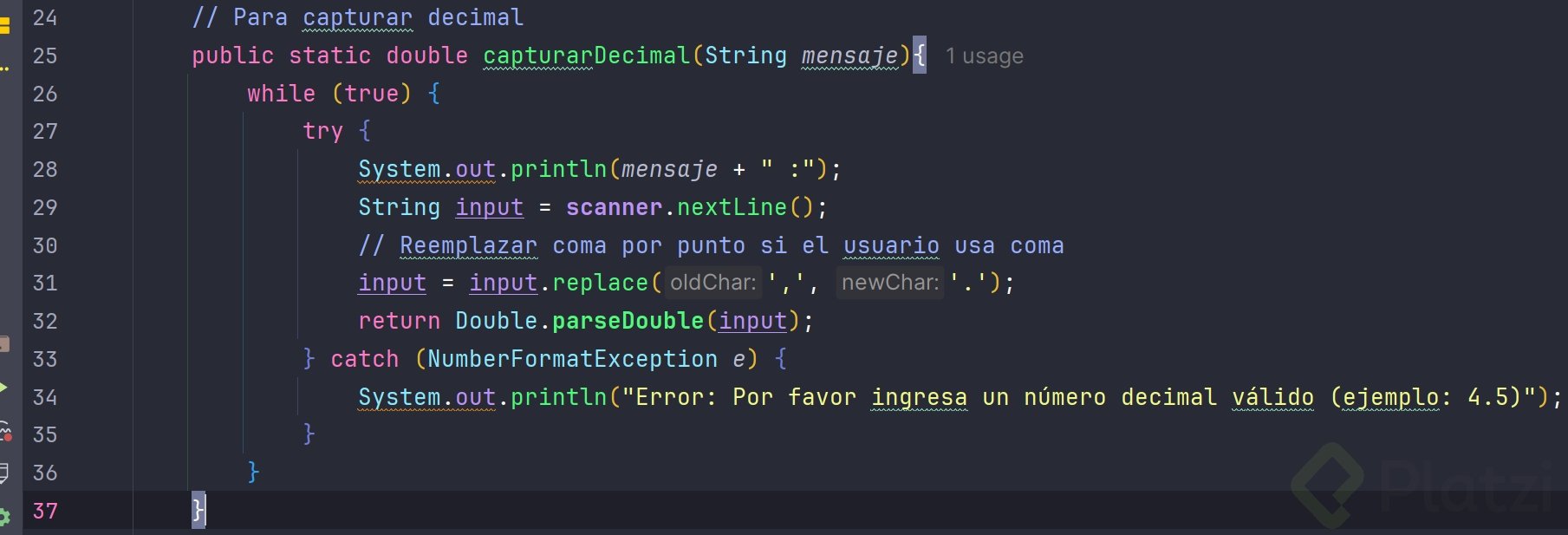 int, asegurándose de limpiar el salto de línea al final. - Capturar número decimal: igual proceso pero utilizando