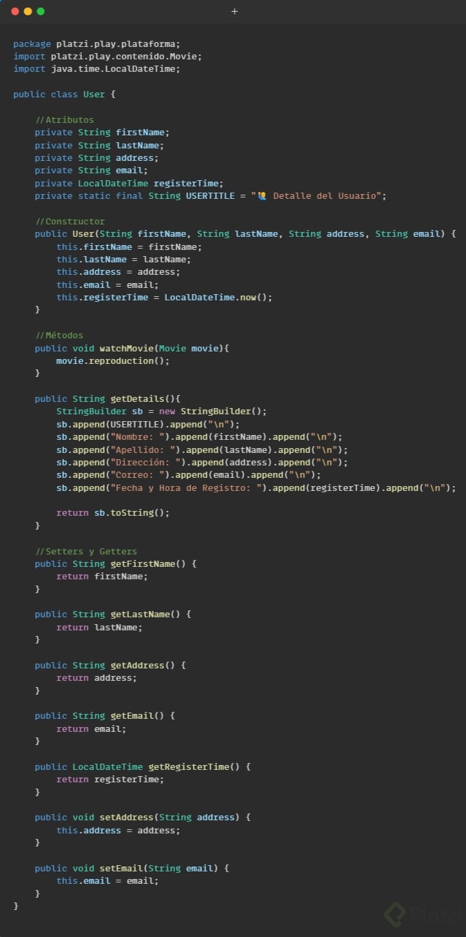 Se invita a practicar encapsulando los atributos de una clase distinta, como usuario. Al hacerlo, piensa qué atributos deben ser privados, cuáles deberían tener getters, y si conviene permitir setters.