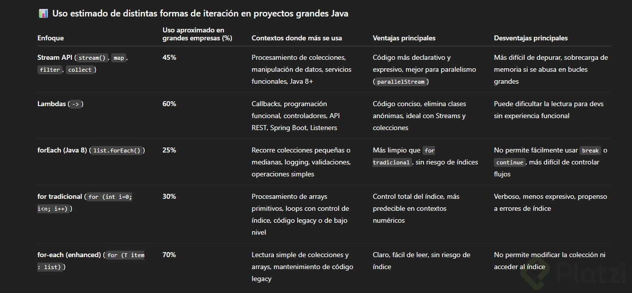 Java también permite realizar operaciones más avanzadas como filtrar o transformar listas usando streams y lambdas, ideales para estructuras de datos limpias y operaciones modernas.