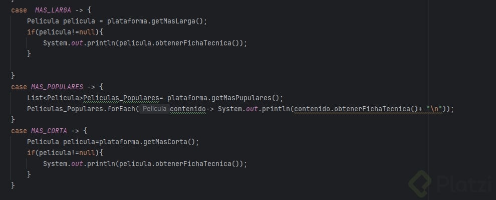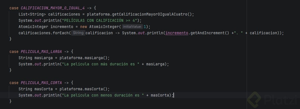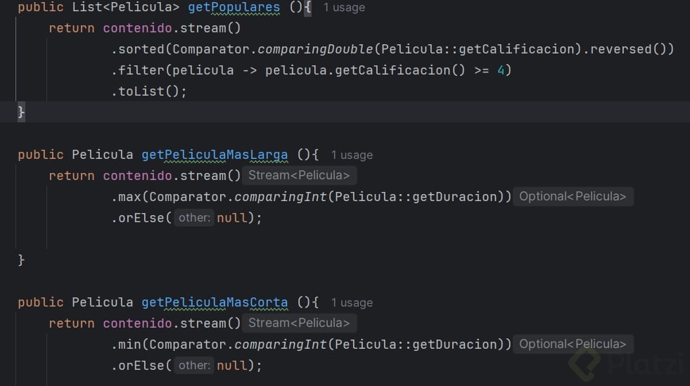 - Filtra las películas con calificación igual o superior a cuatro usando streams y lambdas para obtener solo las más populares.