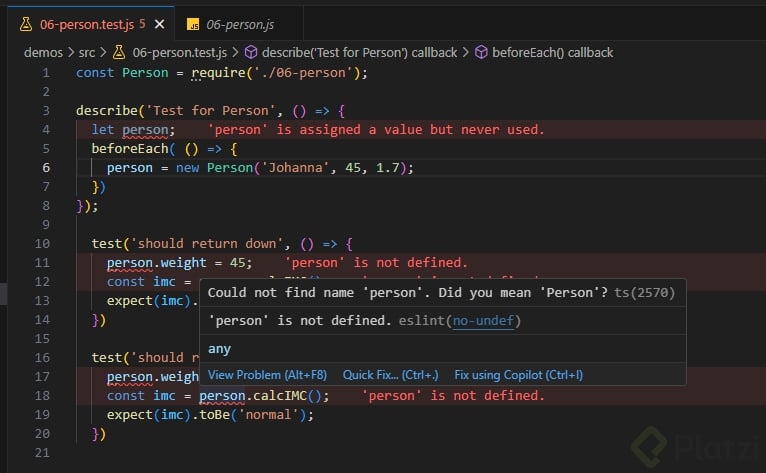 Escribiendo pruebas7Pruebas estáticas11:44 min8Assertions / matchers10:10 min9Setup and Teardown11:31 min10Implementado SetupViendo ahora11Tipos de pruebas13:34 min12Metodologías13:59 min