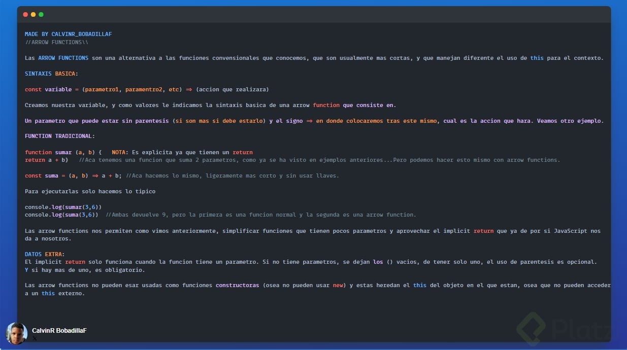 Las Arrow Functions no solo simplifican el código, sino que también resuelven problemas comunes asociados al this, permitiéndote concentrarte más en la lógica y menos en el manejo del contexto. Continúa explorando y experimentando para descubrir cómo pueden transformar tu estilo de programación.