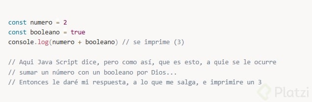 En este ejemplo, JavaScript convierte el booleano true a un número 1 para realizar la operación de suma.