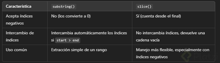 Extraer subcadenas: Ideal para obtener ciertas partes de un string, comenzando y terminando en los índices especificados.