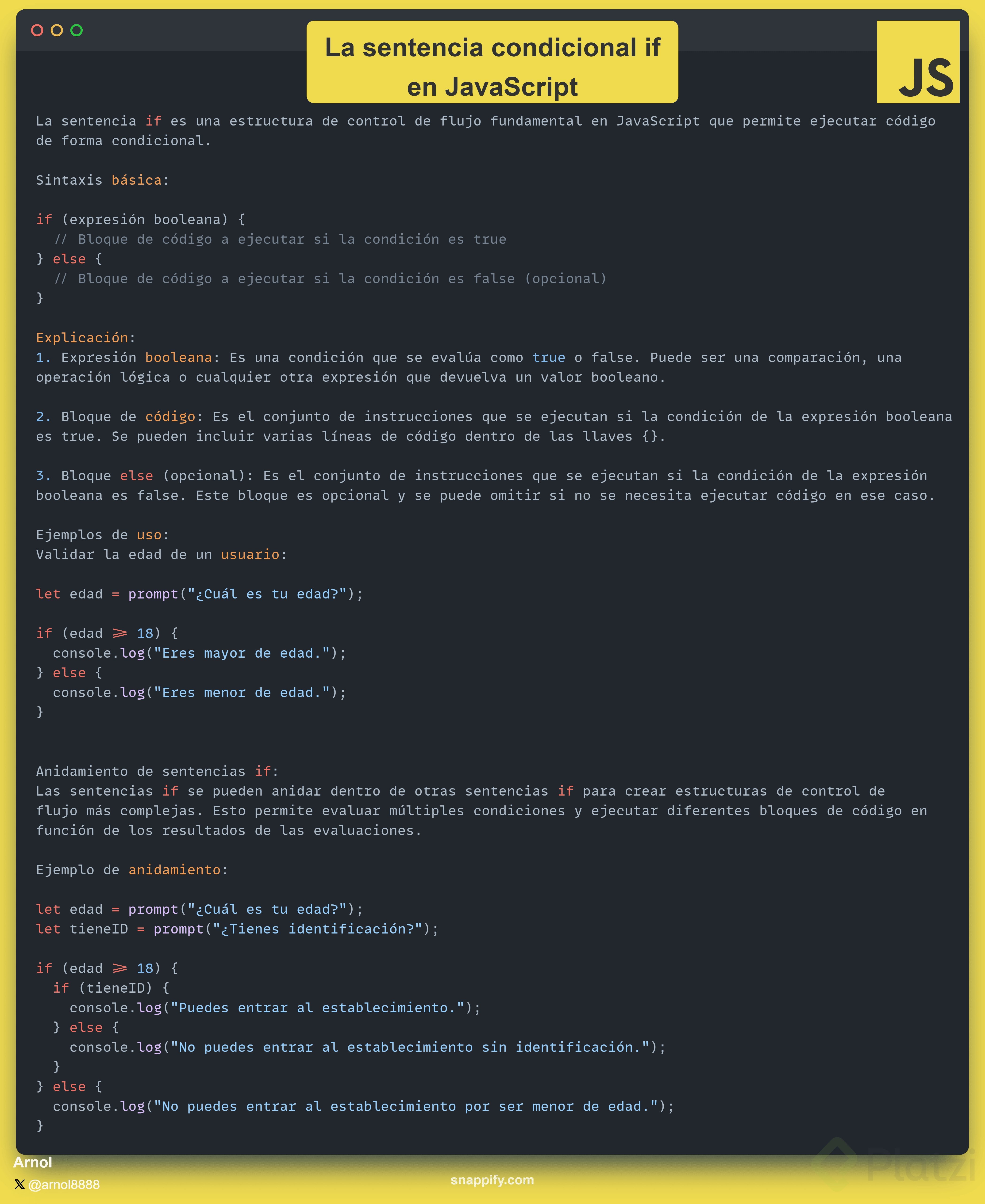 Al programar, uno de los conceptos fundamentales a dominar son las estructuras condicionales, también conocidas como estructuras de control. Estas estructuras nos permiten decidir qué parte de nuestro código se ejecutará basado en ciertas condiciones. En JavaScript, la estructura condicional más básica es la sentencia if, que nos permite ejecutar un bloque de código sólo si una determinada condición es verdadera.