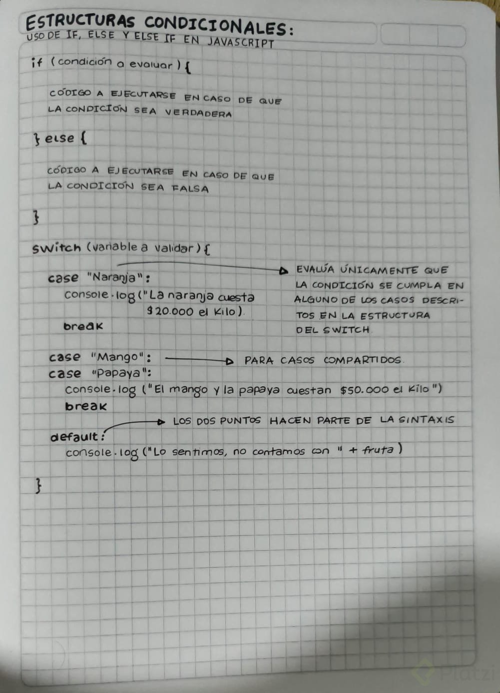 default: Se utiliza como el "else" de un Switch, proporcionando una salida cuando ninguna condición es verdadera.
