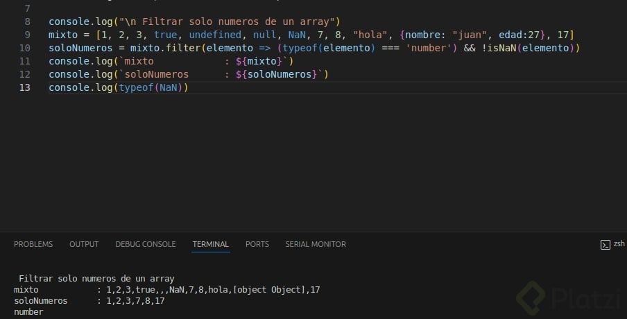 En este bloque de código, filter recibe una función flecha que evalúa si cada número del array es par (i.e., el módulo de 2 es cero), retornando un nuevo array con estos números pares.