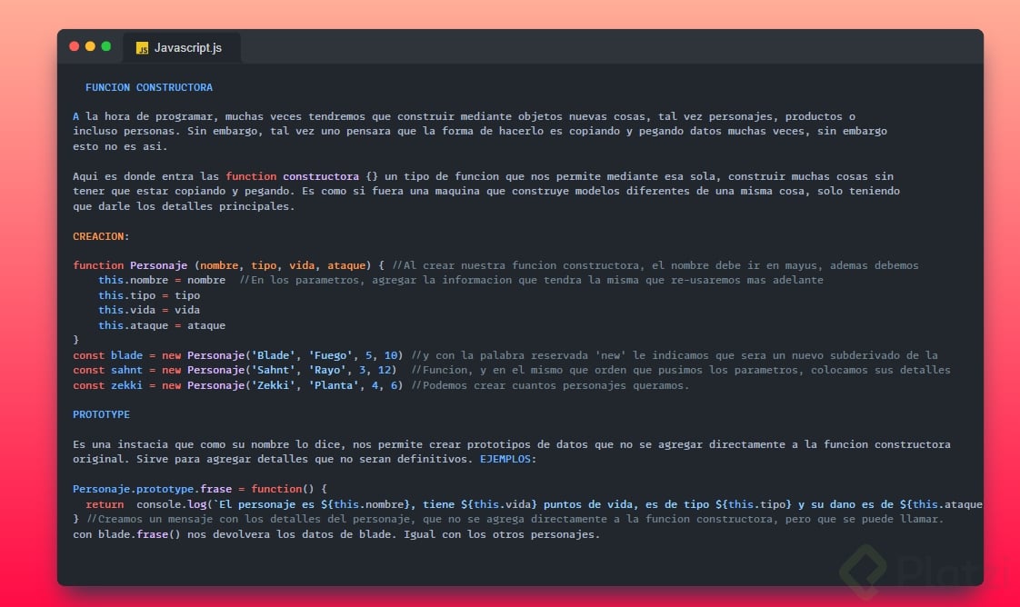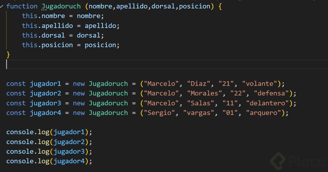 - Nombre en mayúscula: Iniciamos el nombre de la función constructora con una letra mayúscula para indicar que esta función se utilizará para crear objetos.