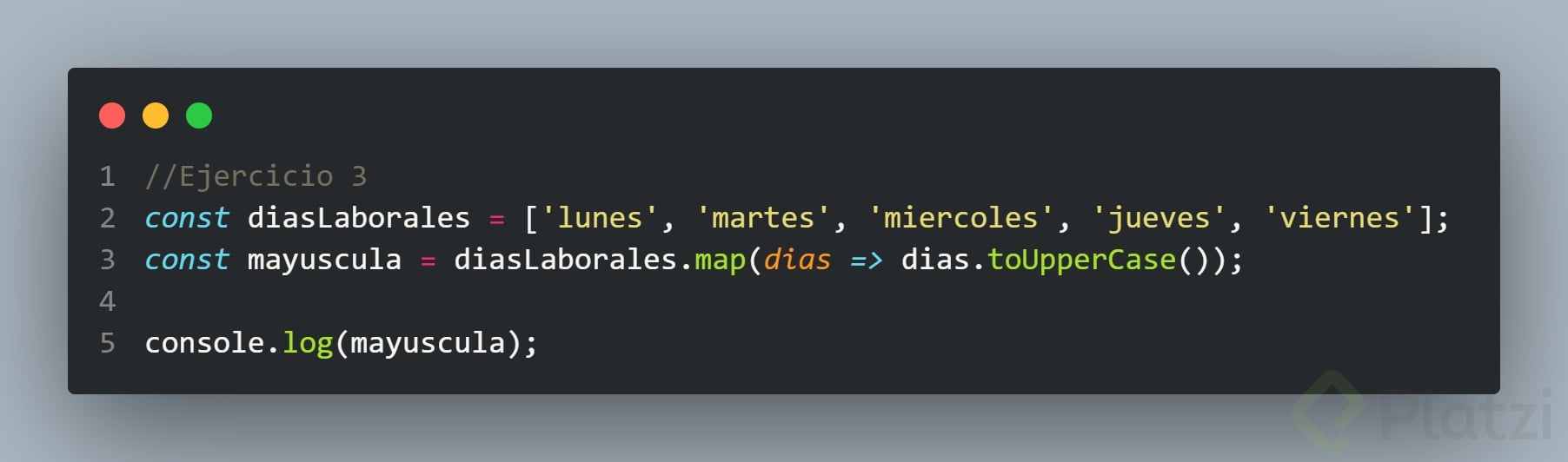 Aquí, forEach imprime cada color en la consola, pero no devuelve un nuevo array.