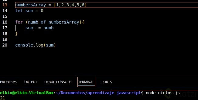 console.log(`La suma de todos los elementos del array es: ${suma}`); // La suma es 15