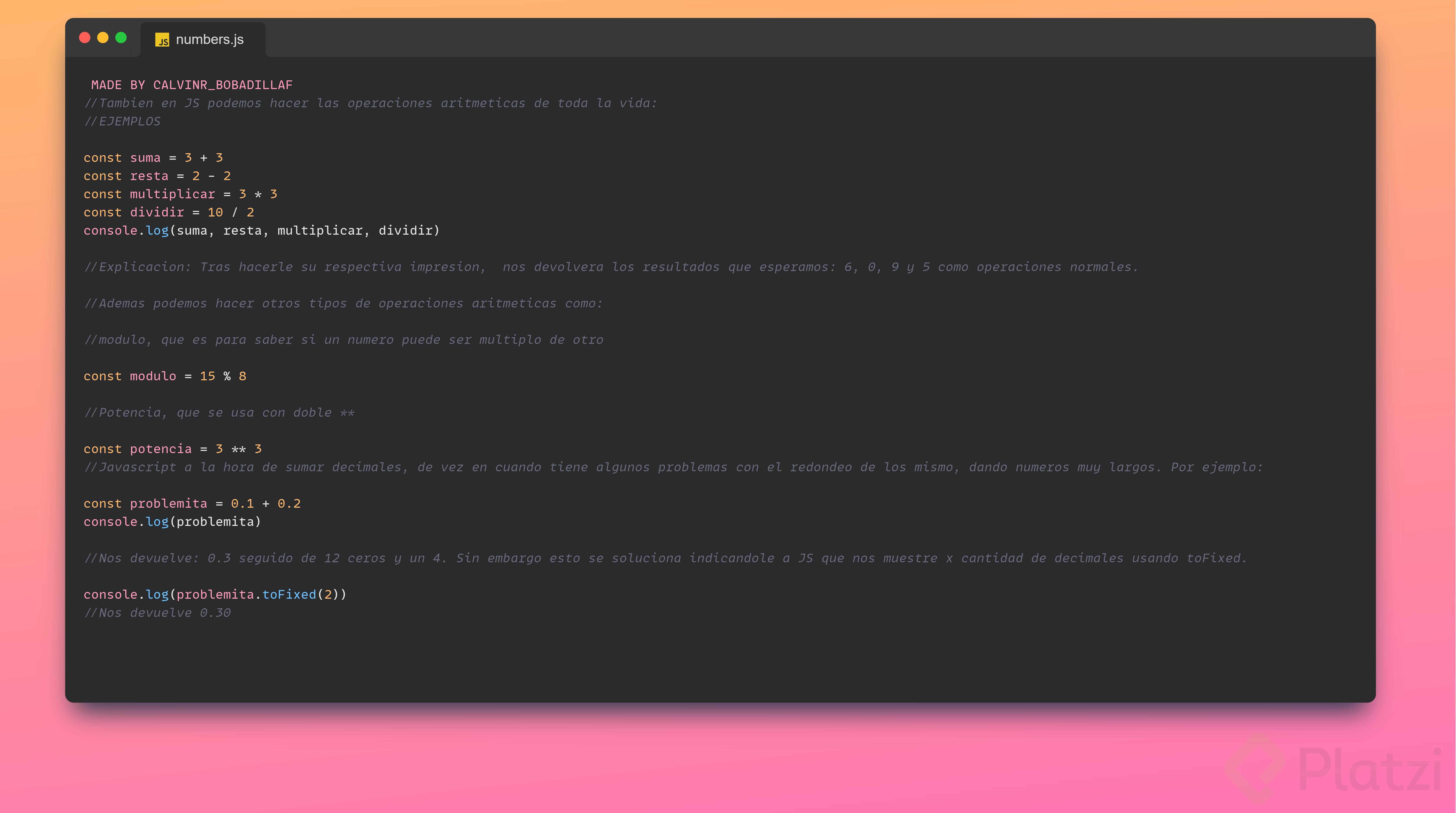 Módulo (%): Retorna el residuo de una división entre dos números. Útil para saber si un número es múltiplo de otro.