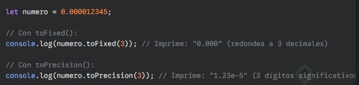 let resultado = 0.1 + 0.2; console.log(resultado); // Imprime algo como 0.30000000000000004