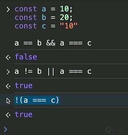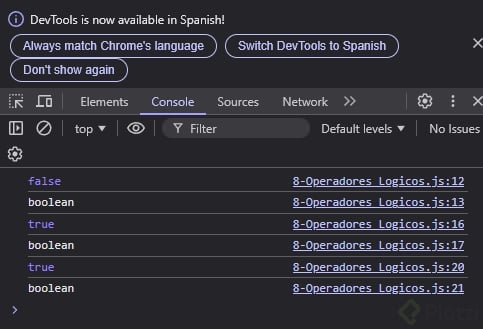 Aquí, A === C es false porque no son del mismo tipo de datos, pero al aplicar el operador NOT, el resultado final es true.