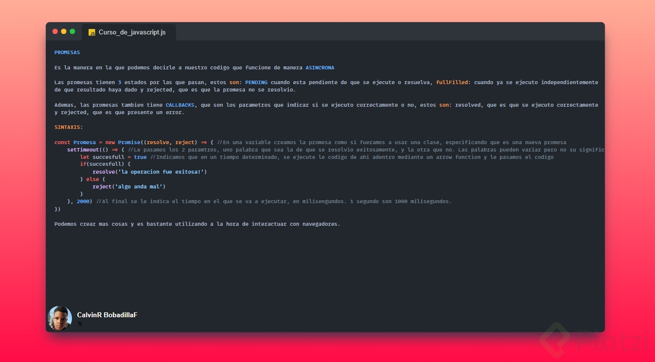 - Fulfilled (resuelta): Indica que la promesa se ha completado con éxito.