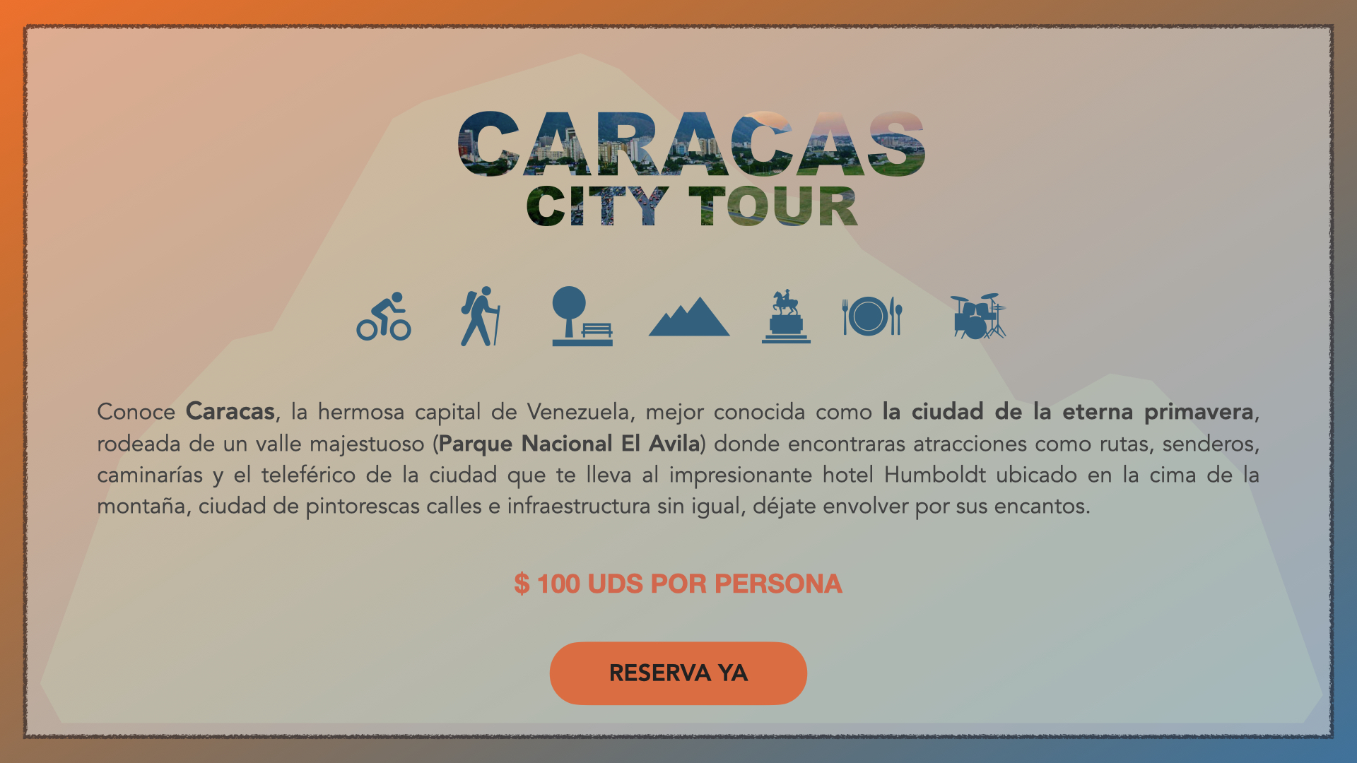 - Incluye texto que explique los detalles del tour, como el itinerario, el costo y los puntos a visitar.