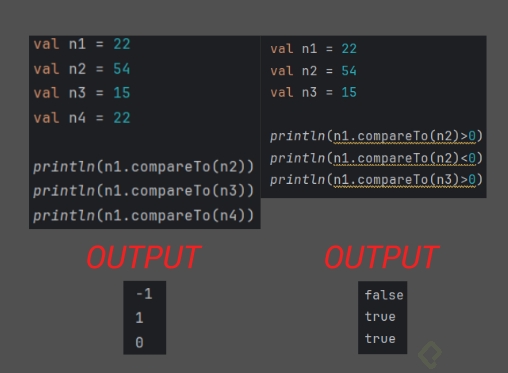 | a < b | c = a < b | public override operator fun compareTo(other: Int): Int |