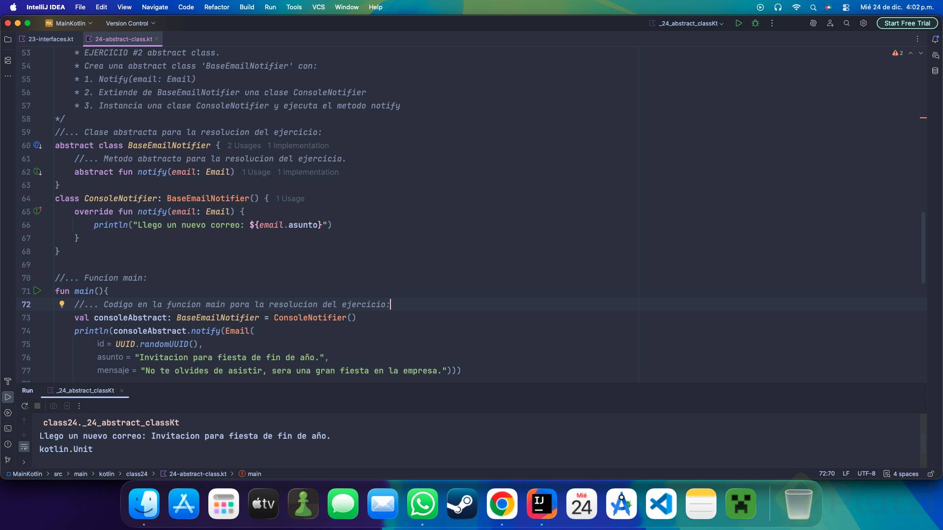 Recuerda, implementas la función notify obligatoriamente en la subclase cuando usas abstract class, algo similar a la implementación requerida por una interfaz, pero mediante herencia.