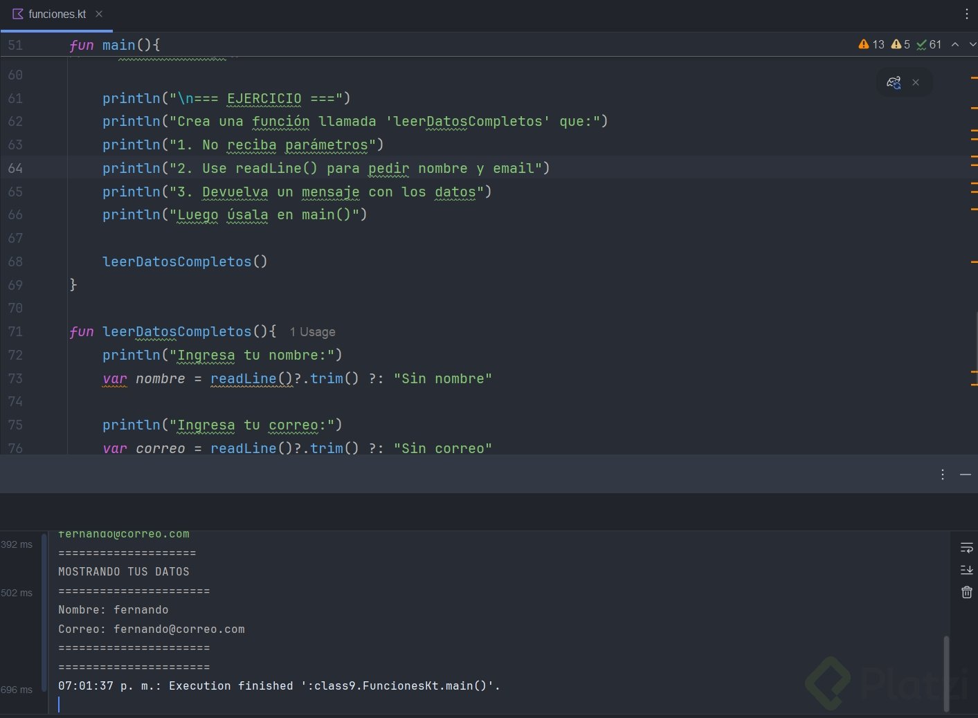 Aquí, la función leerDatosCompletos() devuelve un valor que es inmediatamente usado por println().