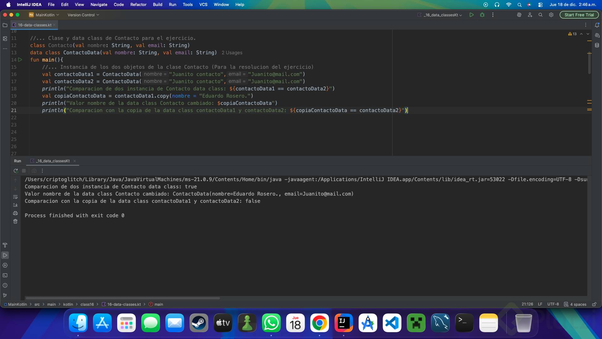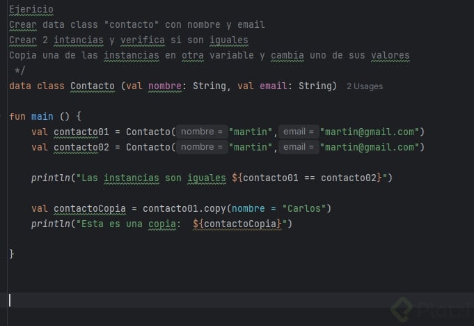 println(emailDataUno == emailDataDos) // arroja 'true' porque tienen los mismos datos