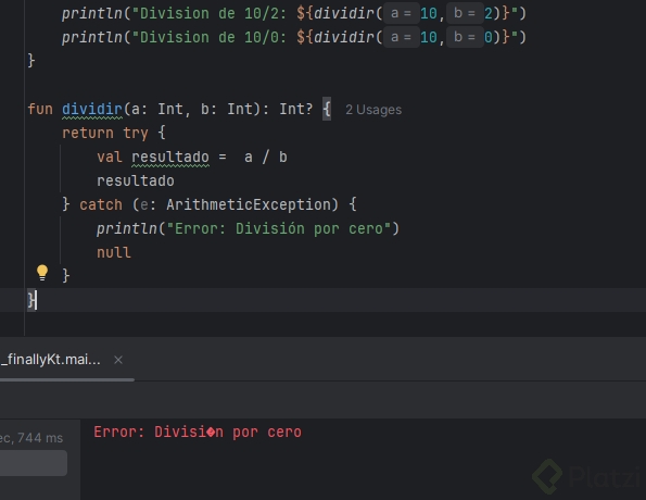 println(dividir(10, 0)) // Devuelve null