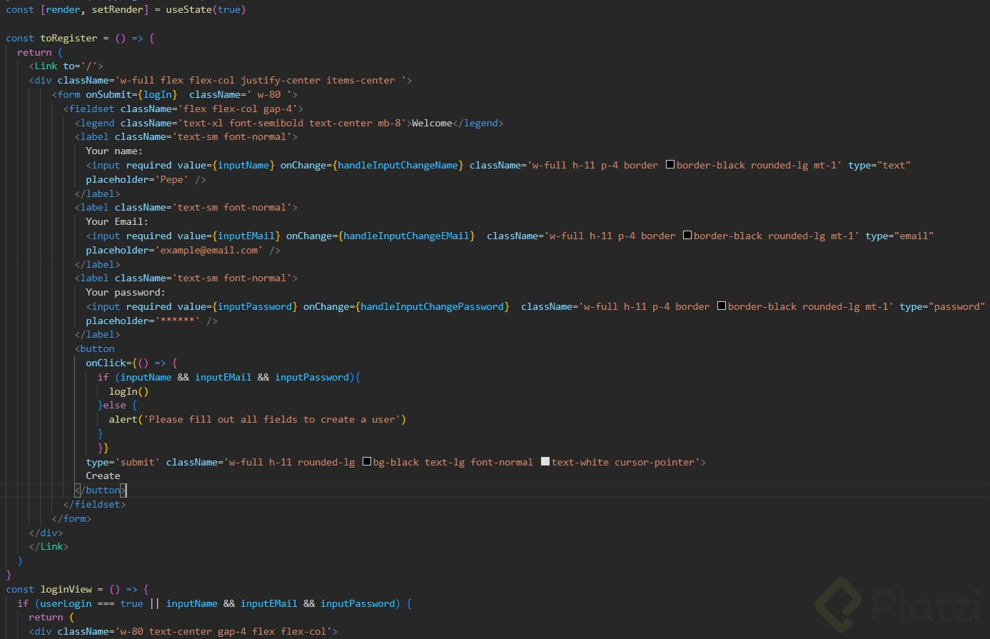 Solución de la prueba4Code review: LocalStorage en React.js11:165Code review: Vistas Dinámicas para el SignIn06:176Code review: React Context y FormData04:457Code review: Protección de Rutas05:048Code review: Entregando la Prueba05:54