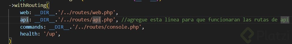 Una vez creado el controlador, el siguiente paso es configurar las rutas en routes/api.php.