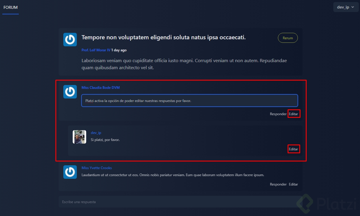 Iniciamos con el diseño del formulario para la edición. Este formulario debe aparecer solo cuando una propiedad específica tenga un valor determinado, generalmente true. En caso contrario, debe mostrarse la visualización estática de la respuesta.