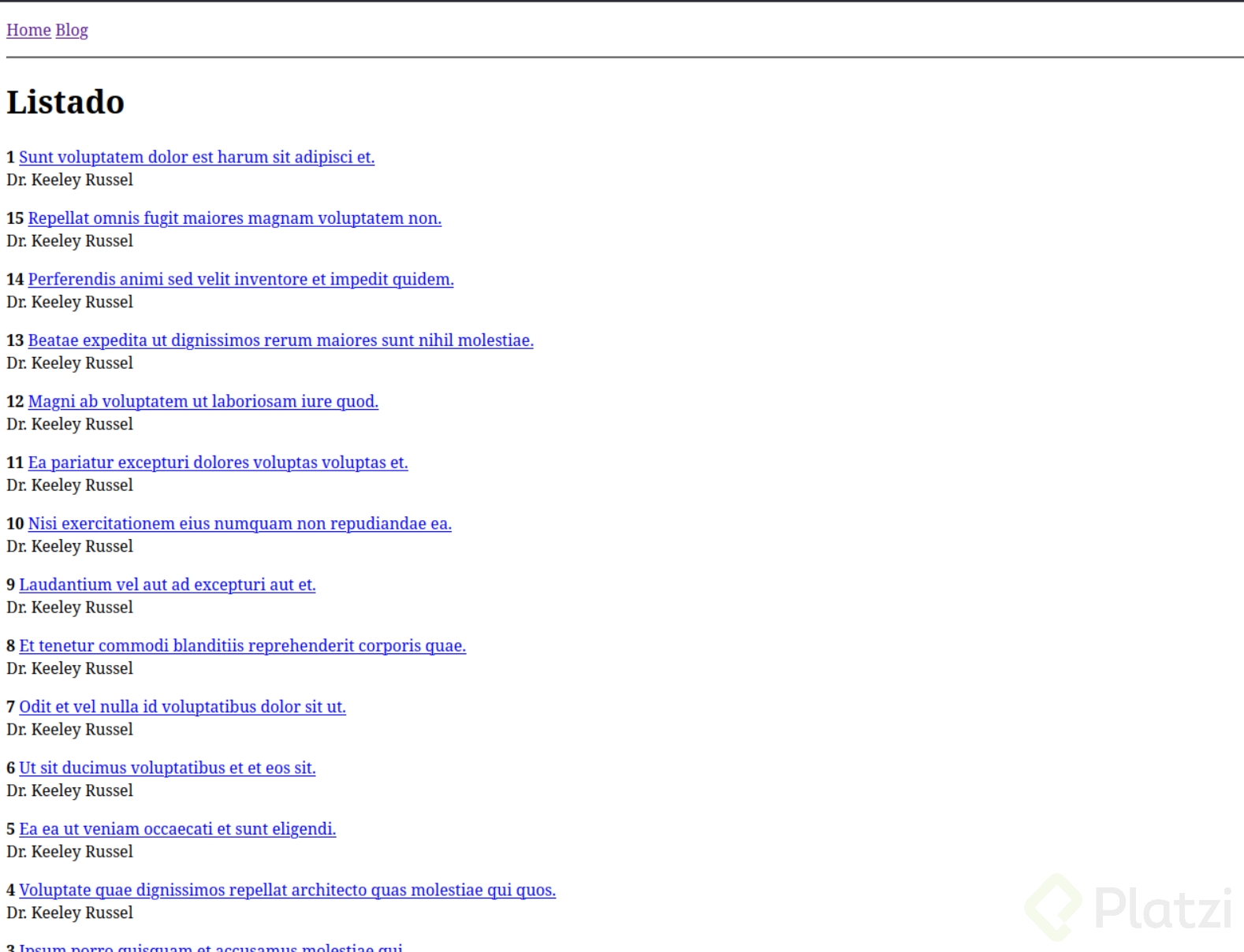 Finalmente, para mostrar el nombre del usuario que realizó una publicación en la vista, debes modificar la página del blog para reflejar esta relación: