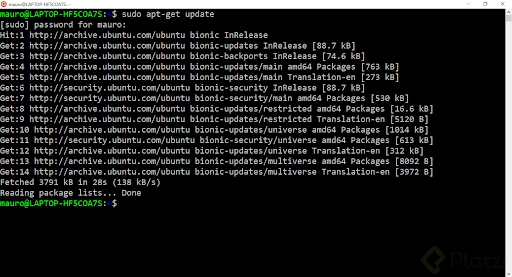 - Actualiza tu administrador de paquetes (Ingresa tu contraseña cuando se te solicite).
